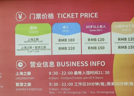 오른쪽 사진은 티켓 가격인데 성인 180위안짜리는 전망대만 가는것이고