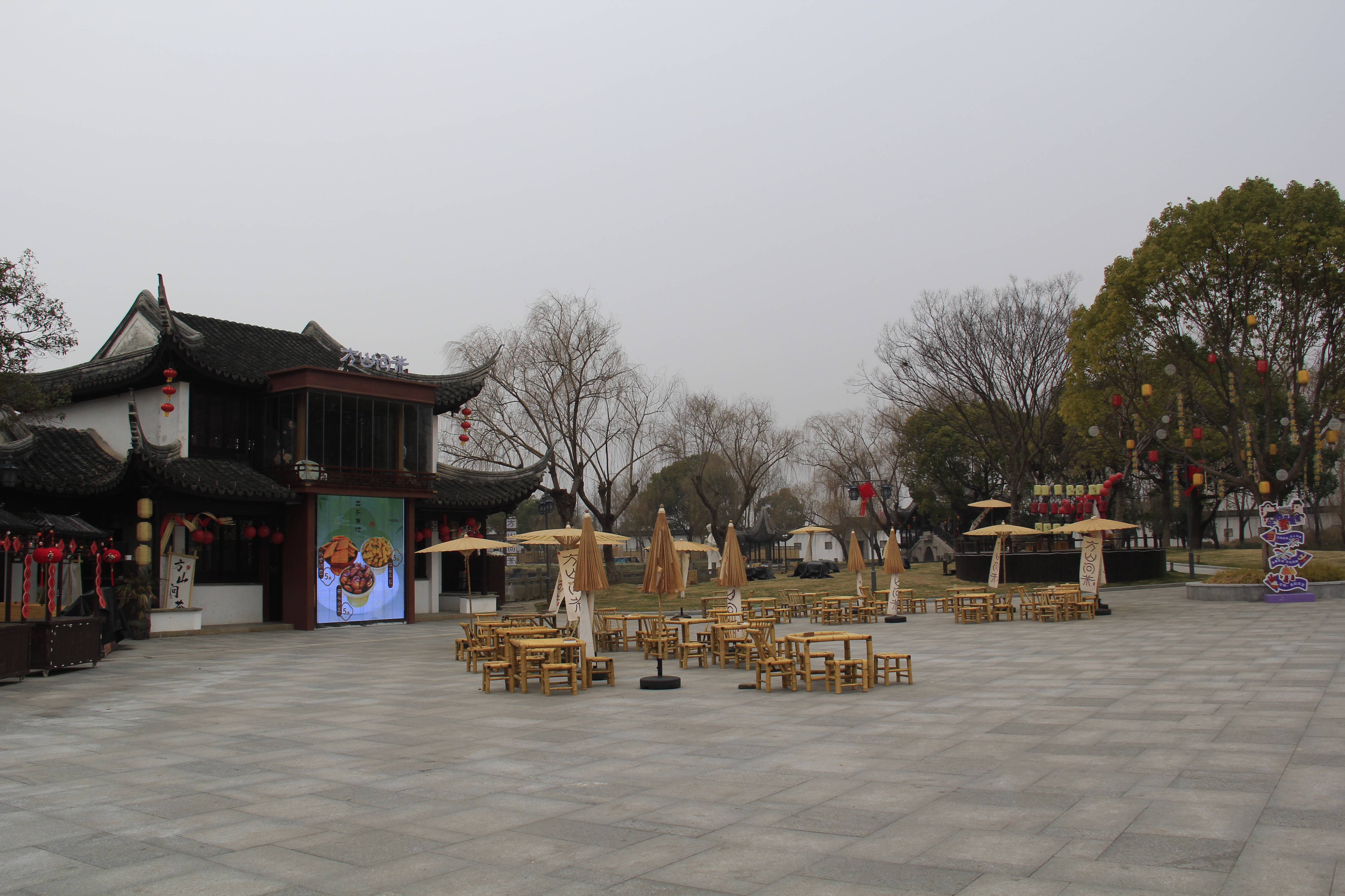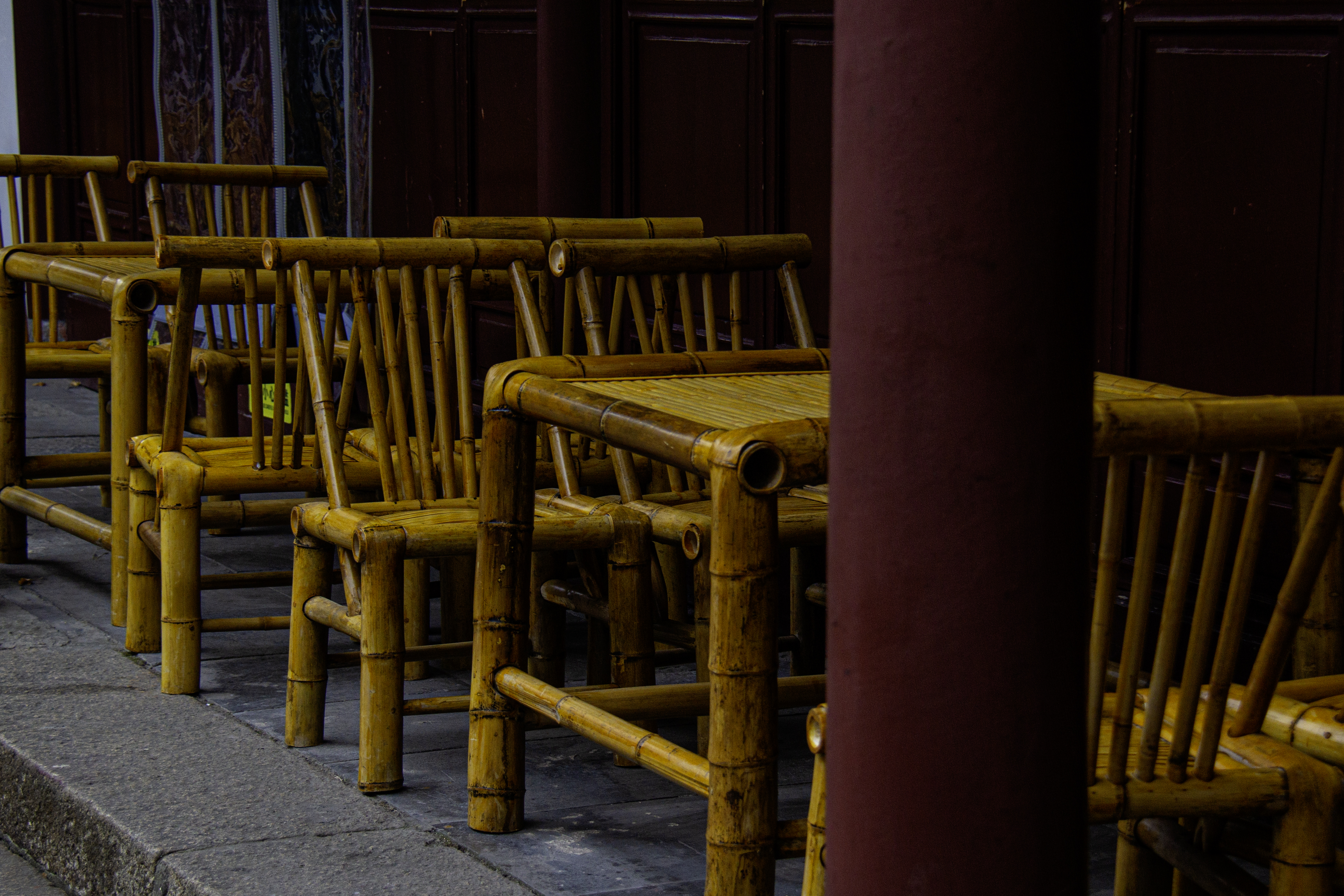 시탕에는 곳곳의 상점들 앞에 이런 대나무 테이블과 의자들이 많이 있다. 그냥 장식이 아니라 진짜로 사용하는 것들이다.