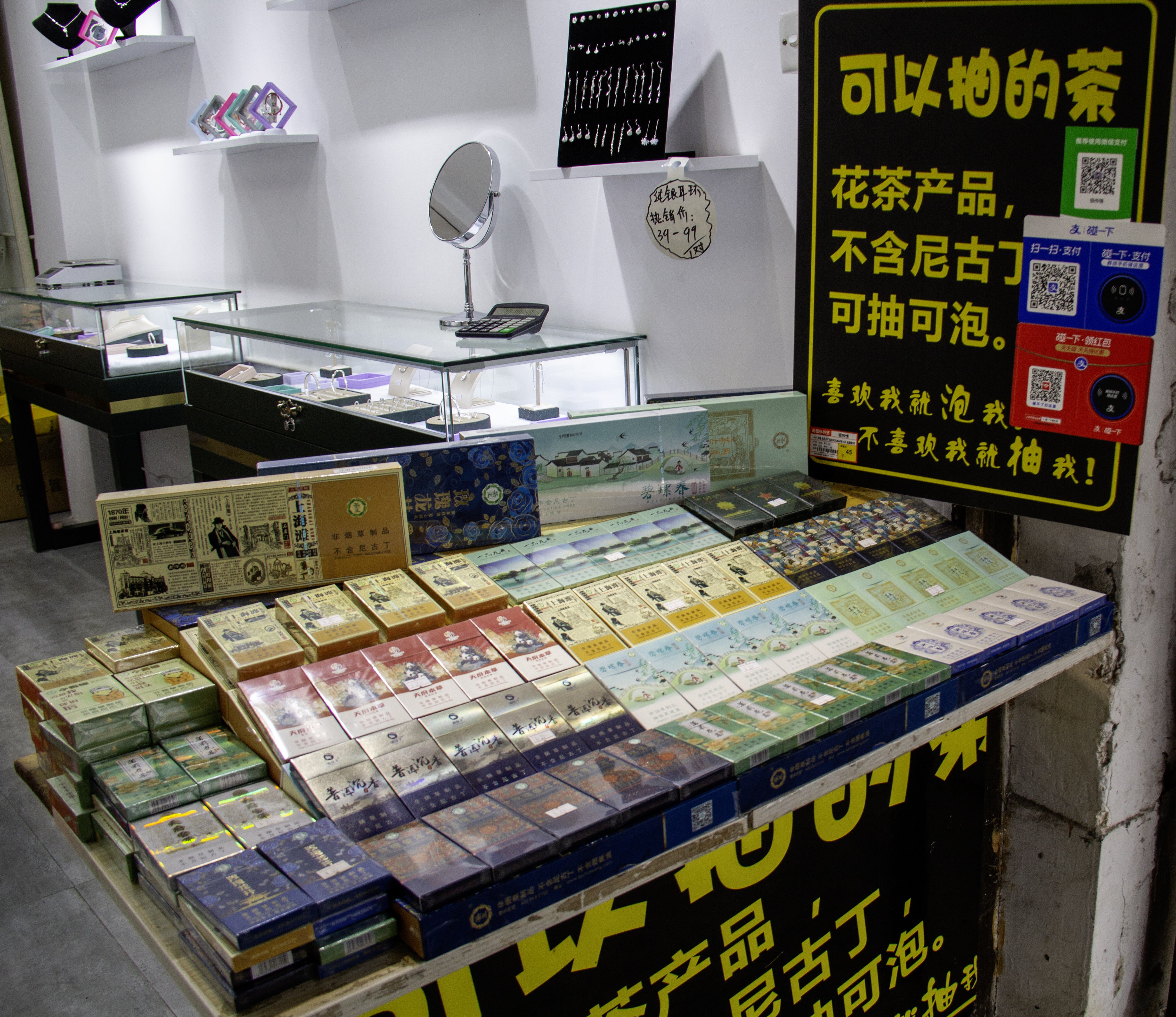 다른 곳에서는 보지 못한 피우는 차잎도 파는데 담배잎 대신 차잎으로 만든 담배라고 생각하면 비슷하지 않을까 싶다.