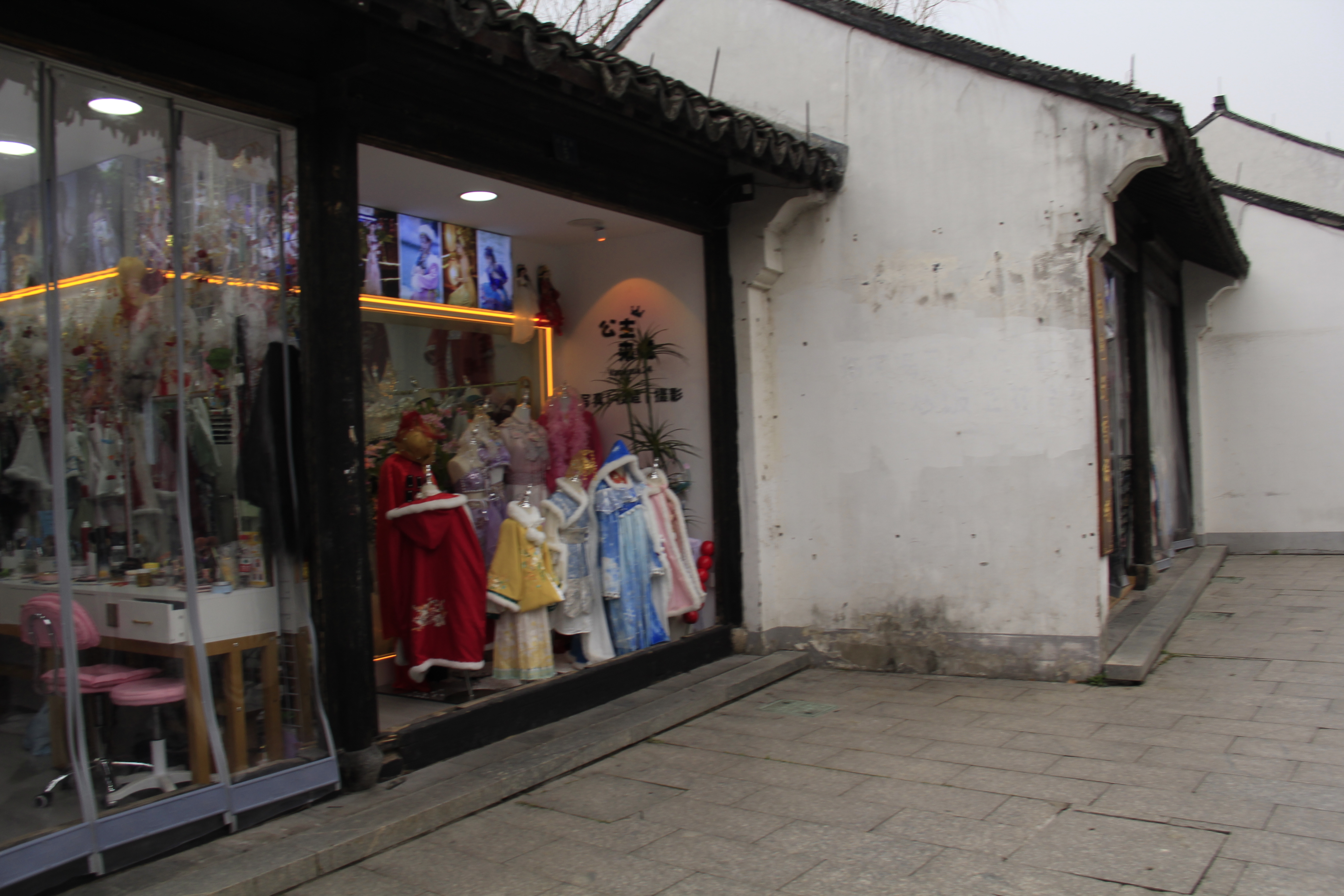 마을 입구에는 각종 옛날 복장을 대여해주는 상점들이 있다. 메이크업도 해준다.
