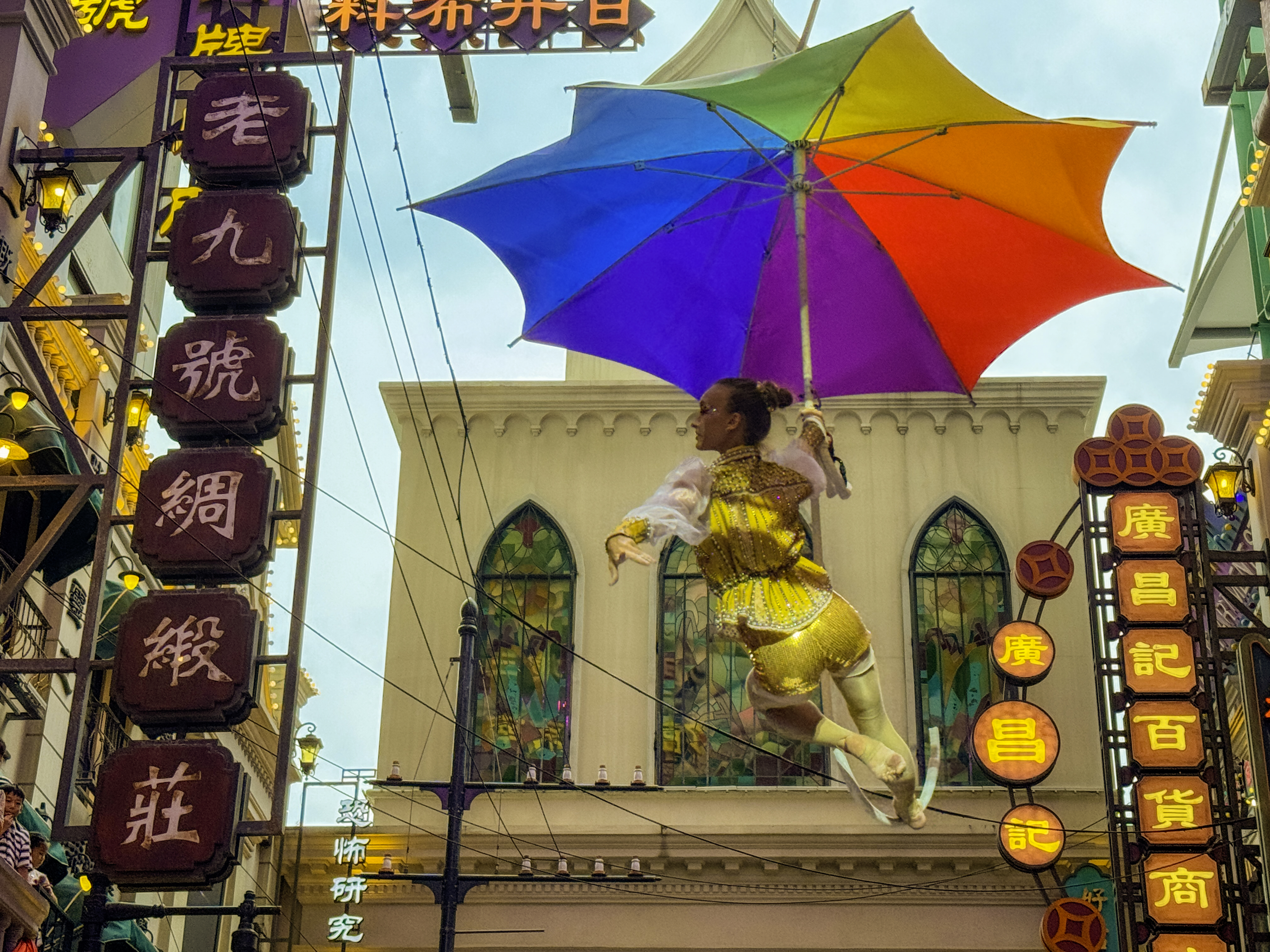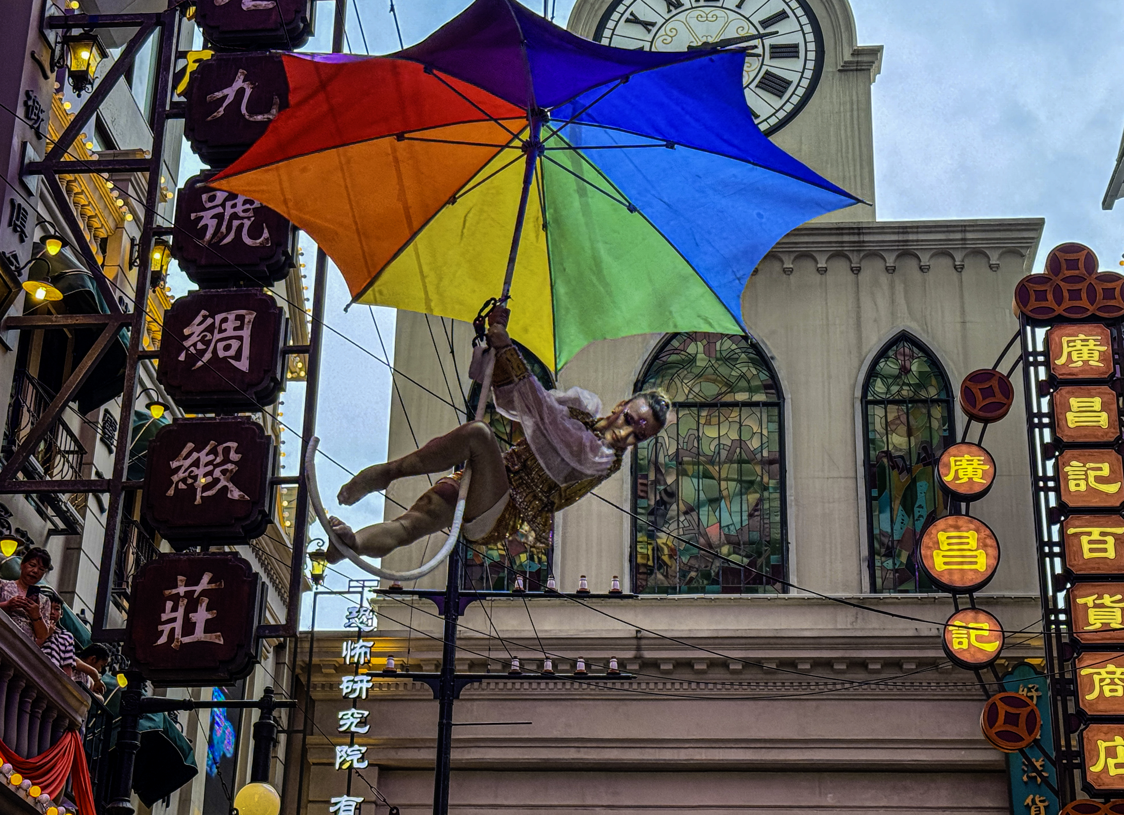잘 보면 맨 끝사진의 공중에 매달려 있는 배우가 아까 테마파크 1층에서 공연하던 배우이다.